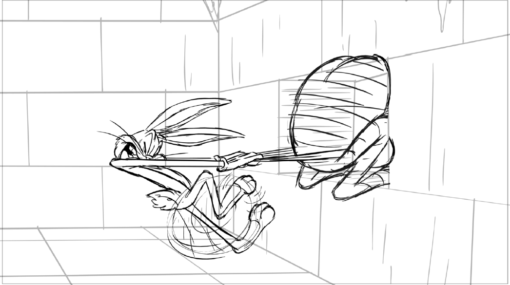 Being so early on, we were all sort of testing the waters in regards to what we could do, which in a way also meant "what could we get away with?". How close in terms of the original LT short's content/violence could we do? Could/should we go even further? etc. Personally, it was both super liberating and very daunting, after coming off of 3yrs on "Wabbit/New Looney Tunes", where we could barely get away with anything even remotely violent without S&P stepping in and cutting us off at the ankles. So I asked "could I...?" an awful lot.